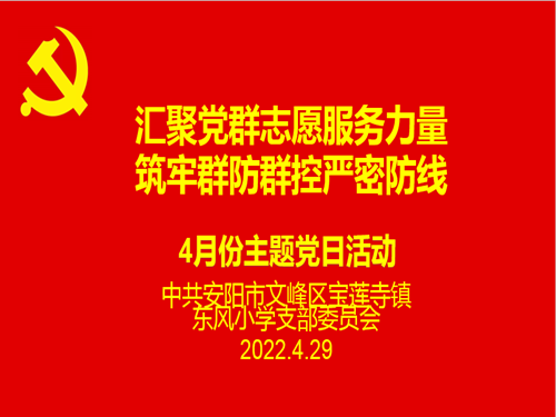 文峰区东风小学党支部四月份主题党日活动时间:2022-04-30 为坚持党建引领,充分发挥基层党组织战斗堡垒和党员先锋模范作用,让党旗始终在疫情防控一线高高飘扬。4月29日,文峰区东风小学党支部利用企业微信,线上开展了“汇聚党群志愿服务力量,筑牢群防群控严密防线”主题党日活动。 首先,董晨毅同志带领全体党员和入党积极分子依次学习了“十大战略”政策知识、习近平总书记在北京冬奥会、冬残奥会总结表彰大会上的讲话精神和学习贯彻习近平总书记在海南考察调研时的重要讲话精神。 接着,董晨毅同志带领大家共同学习了疫情群防群控政策。参会人员对来(返)安人员政策、离安人员政策、居家健康监测与居家隔离和自我健康监测的区别等问题有了更详细的了解。 董晨毅同志强调疫情面前,我们无论来自何地、无论身处何方,都是休戚与共的命运共同体。当抗击疫情的“哨声”吹响时,该支部党员李志军同志被临时抽调到文峰区纪检委工作,崔振宇同志被抽调到文峰区疫情防控指挥部工作,该校教师王莉珍、吕小宁、张喜芳、王祎积极投身到村庄核酸检测志愿者服务队伍中。他们听从使命召唤,义无反顾奋战在疫情防控一线,不分昼夜毅然坚守,尽锐出战冲锋在前,用自己的忠诚信念和无私奉献捍卫着百姓健康与安全,全力维护疫情防控,践行着共产党员的初心和担当,用实际行动践行“我在一线”抗击疫情的决心和担当。 一名党员一面旗帜,一个支部一座堡垒。活动结束之前,全体党员紧握右拳,在党旗下铿锵有力地重温入党誓词,慷慨激昂的承诺,坚定了大家做好疫情防控工作的信心和决心。 涓涓细流汇成大海,点点星光照亮银河。东风小学党支部始终把疫情防控工作作为当前首要政治任务落细落实,广大党员始终坚守在疫情防控的最前沿、第一线,用实际行动筑起疫情防控的钢铁防线。下一步,东风小学党支部表示,将继续严格落实各项防疫要求,把党史学习教育成果转化为疫情防控和服务群众的强大动力,勇担社会责任,助力疫情防控,让党徽闪耀在疫情防控一线阵地。 |