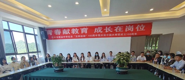 青春献教育,成长在岗位——巴中市职业中学召开“五四”青年节教师座谈会教育文摘周报5月5日四川讯 为进一步加强青年教师队伍建设、促进青年教师的专业发展,更好地倾听青年教师的心声和感悟,了解青年教师的需求和愿望。2022年5月4日上午,四川省巴中市职业中学组织召开了“五四”青年节教师座谈会,会议由学校党总支副书记李先禹主持。