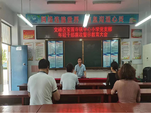 为了更好的学习“敬廉崇洁”理念,进一步深入开展党史学习教育,从党史中汲取“清廉”力量,全面推进年轻干部廉政建设,5月25日,文峰区宝莲寺镇中心小学召开了年轻干部廉政警示教育大会。