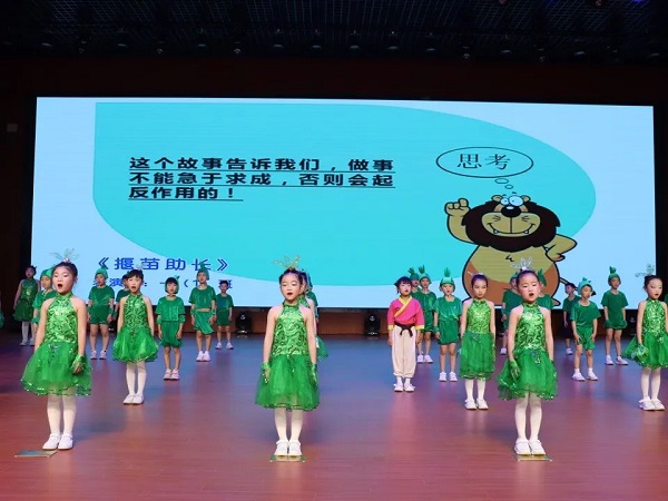 台上的小演员们神情投入,台下的小观众们聚精会神。