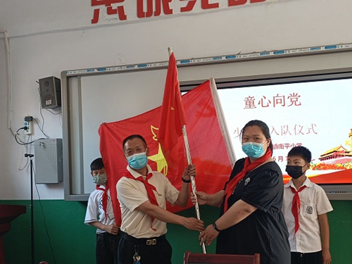 6月1日,龙安区南平小学大队部为50名新少先队员举行了隆重的入队仪式。