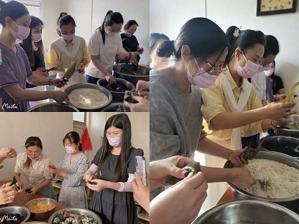 此次活动由学校工会组织,活动包括四个环节:包粽子、做香囊、多彩端午、粽香满园。 五月五,过端午,粽叶青,糯米香。老师们用双手将粽叶卷成漏斗状后,加入糯米、蜜枣等食材,充实压紧,再用棉绳上下缠绕、捆扎,不一会儿,可爱的粽子就包好了。有些教师还是头一次动手包粽子,也是饶有兴趣、努力尝试……锅内粽味飘香,锅外谈笑风生! 趁着煮粽子的时间,老师们开始学着制作香囊,桌上已提前摆好针、线、布料、挂链、吊坠、各种配饰、各种香料、迷你缝纫机……大家随着手工老师的指导穿针、引线、缝针、串珠、装料……一双双巧手在针线间来回穿梭,互学互助,一片忙碌……造型多样、饱满精致的香囊、洋溢着幸福笑脸的老师们,大家不由互相拍照留念,记录下美好难忘的瞬间。 五彩绳,是端午节的吉祥饰物,寓意祈福纳吉。大家用心编织着,耐心勾编吊坠,裁剪流苏,把五彩绳戴在腕上的一刻,幸福写在脸上,满意荡漾心海。 大家围坐起来,“粽”情“蜜”意,其乐融融。张国宏校长也来到老师们中间,把新鲜出锅的粽子分发到教职员工手中,让忙于工作的老师们歇息一下,品味传统,“粽”享未来。 活动不仅为端午佳节增添了喜气,传承了传统习俗,还进一步活跃了校园文化氛围,弘扬了爱国主义情怀和民族精神,让教职员工感受到学校大家庭的温暖和情意。(沁阳市实验小学供稿) |