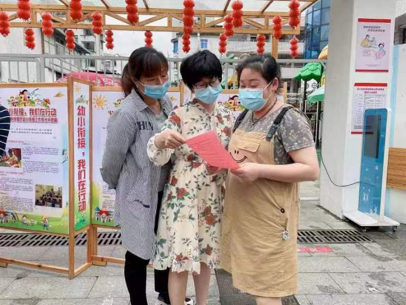 活动现场吸引了许多家长上前咨询,教师志愿者就教育部印发的《关于大力推进幼儿园与小学科学衔接的指导意见》和《幼儿园入学准备教育指导要点》相关内容为家长进行详细宣传讲解,告知家长幼儿园、家庭、社区共同做好幼小衔接的重要性与必要性,并对“幼小衔接家长该怎么做”“该不该提前上培训班”等家长关心的问题答疑解惑,帮助家长树立科学的幼小衔接理念。