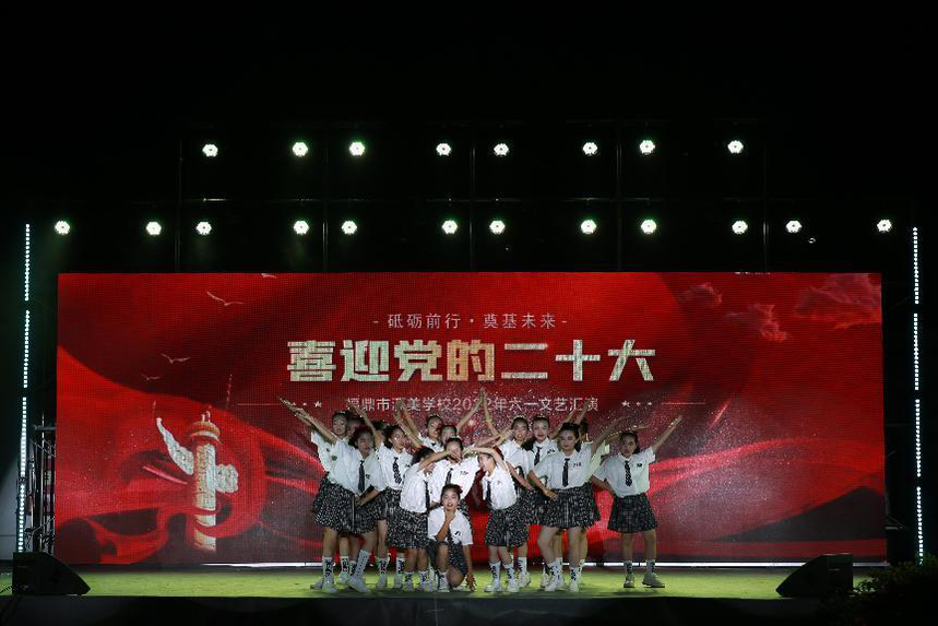 花开新时代 喜迎二十大—福鼎市溪美学校举办庆“六一”文艺晚会时间:2022-06-10 教育文摘周报6月9日福建讯(陈强 通讯员 蒋生朝)仲夏时光争明媚,缤纷六一载欢欣,为了让孩子们过上一个快乐而难忘的儿童节,6月6日晚上,福鼎市溪美学校举办“花开新时代,喜迎二十大”文艺汇演晚会。溪美菰北助学促进会成员、溪美学校历任校长、兄弟校校长、家长代表、溪美菰北村两委应邀参加晚会。