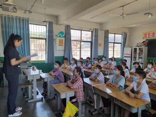 6月14日,龙安区法院领导朱海霞送安全政治课进南平小学。