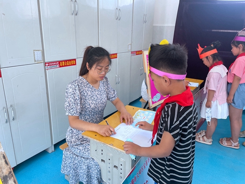 为检测孩子们的学习成果,6月15日,文峰区东风小学举行“东风学子闯关乐,双减路上趣味多”期末大闯关活动。 老师们早早布置好了场地,等待孩子们来闯关。他们带着头饰,手持闯关卡正跃跃欲试,迫不及待地参加期末大闯关活动。 第一关是生字开花。第二关是童声诵诗。第三关是博闻强识。第四关是故事达人。孩子们在欢声笑语中轻轻松松就闯过了四关。 数学学科有四个游戏关卡分别是“神算小精灵”“图形奇乐园”“规律对对碰”“购物乐翻天”他们有的速度很快地进行口算,有的忙着对图形进行整理分类,有的用心寻找数字之间的规律,还有的用人民币仔细计算,每个游戏都蕴藏着孩子们学过的知识。 孩子们凭自己的实力闯过一个又一个关卡,拿着写满星章的“闯关卡”,无比自豪,脸上露出了成功的喜悦。 此次活动孩子们收获满满,快乐写在脸上,活泼、开朗、自信、大方正在心中萌芽、成长。“双减”的本质是减负增效,落实“双减”政策,促进全面发展。虽是开始,但大家一直在路上。愿扎根东风小学这片沃土的孩子们,拥有一个多彩的校园生活。 |