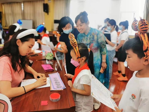 为深入贯彻落实“双减”工作要求,积极助推“零起点”教学,全面科学地考察一年级学生的综合素养,将知识性、趣味性、生活性、层次性、过程性、前瞻性、综合性融为一体,发挥评价的激励和导向作用,6月16日,安阳市东门小学于进行了2021——2022学年第二学期一年级学生“零起点”多元化综合素质评价活动。 老师们以教材为基础,以发展学生思维、提升学生综合素养为目的,打破学科壁垒,实现学科融合,将基础知识、动手操作、口语表达等内容有机融合,让学生真正在听、说、读、写、摆、演等能力中夯实基础,把知识内容有效地迁移于生活实践中。 没有印象中严肃的考场,孩子们看到的活动场地张灯结彩,童趣盎然。入口处梦幻气球拱门,数百个玩偶旁,贴满孩子们的心愿卡,真是一入场地竞神通。 活动现场先后迎来了文峰区教育局教育股股长杨青学等考核组领导、文峰区教育局教研室教研员程惠滨老师和文峰区幼小衔接第五组的学校校长和幼儿园的园长们,他们走进现场,查看学校“零起点”教学多元化评价活动,聆听孩子们的精彩回答。程惠滨老师直夸东门小学子的名字书写漂亮,横竖撑天地,捺撇写人生。 考题成为了有趣的情景游戏,分值变成了一个个印章,测试题目变为一道道“关卡”,昔日考场的紧张气氛变成轻松愉悦的闯关游戏。 孩子们畅游语文世界,在“词语小镇”中认读词语,遨游中国汉字间,领悟文字的魅力;在“书声朗朗”中读出文字的无穷韵味,溢出美文的悠悠芬芳;“巧舌如簧”时为语言插上想象的翅膀,能说会道,有条有理,吐字清晰,精彩故事娓娓道来;在“诗情画意”里摘取知识的果实,感受中华语言文字的优美,吟诵经典佳作,传承中华文化。 愉快的数学智慧大比拼,“口算达人”神情专注,细心口算,速度惊人;“能拨会说”在操作的过程中直观感知算理,感知数学思想;“数学超市”模拟生活,使用人民币来购买自己心仪的商品;“拼拼摆摆”仔细观察,探索规律,多样的拼摆图形真漂亮。 孩子们在“火眼金睛认读英语”闯关过程中展示了扎实的语言基本功,标准的语音语调、活泼可爱的动作,体现了孩子们的英语表达能力、丰富的想象力和充满创意的灵动思维。 乐学、乐闯,乐评、乐享,无纸笔考试不是一场简单的、热闹的游戏活动,而是通过这种特殊的形式让孩子们在“玩中学”、在“学中玩”,在轻松愉快的游学活动中收获知识、提升能力。 落实“双减”,成长不减,质量不减,责任不减,东门小学根据“零起点”要求,以学生为中心,以多彩社团为个性生长点,科学做好幼小衔接,让学校成为学生成长的乐园,让教育返璞归真,让孩子快乐的童年更加五彩斑斓。 |