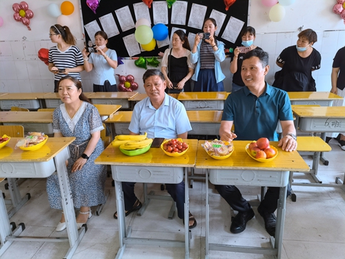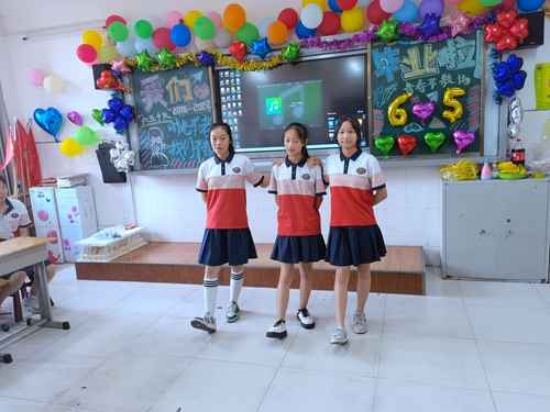 典礼在本班教室举行。热烈的掌声里,校领导们落座,观看全班同学的倾情朗诵《感恩母校》。三位校长为学生颁发了他们人生中第一本毕业证书。班级的各路艺术达人为大家进行了表演。