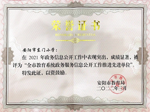 安阳市东门小学政务服务信息公开工作荣获市教育局表彰时间:2022-07-04