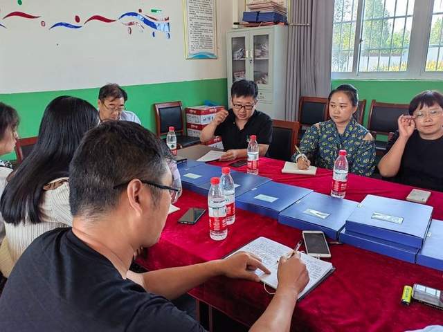 局领导翻阅尚营小学关于民族团结进步教育的档案,并提出了宝贵的意见。