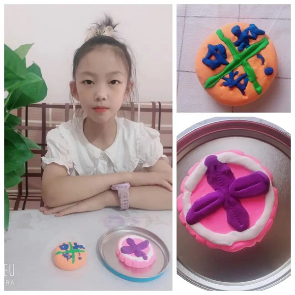 03. 美味月饼我来做 三年级同学们与家人一起动手制作美味可口的月饼,共同分享美味,也有同学用彩泥或其他材料制作出漂亮的月饼,美哉美哉。