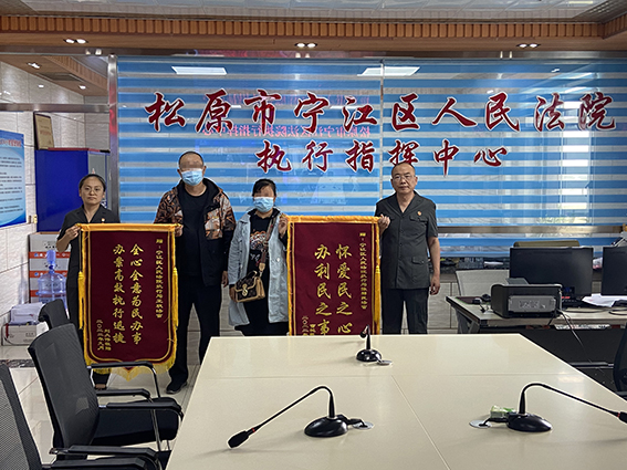 “感谢宁江法院的陈法官、王法官,感谢宁江法院的执行干警,多亏你们的执行,才为我们这么快就追回了辛苦打工挣来的血汗钱!”申请执行人曹某某、刘某某一边向执行法官递锦旗,一边激动地说道。