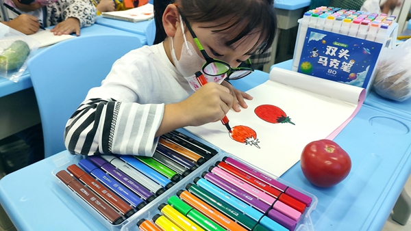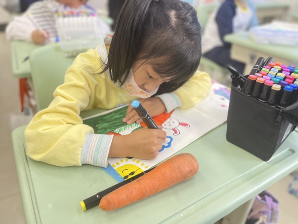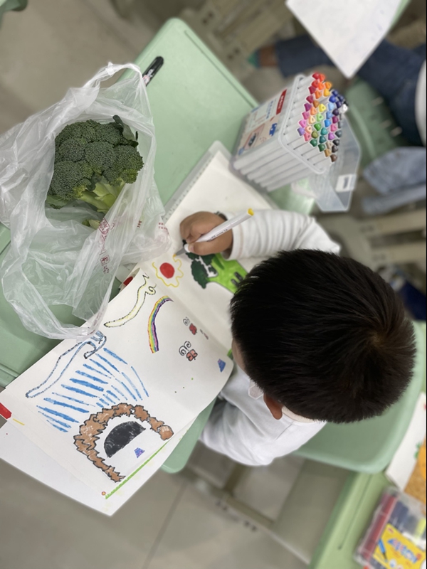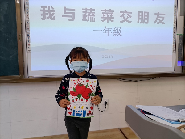巧手绘画蔬友 拿起画笔,细致观察,给“蔬友”作画。同学们笔下的蔬菜可爱灵动,仿佛有了生命一般。