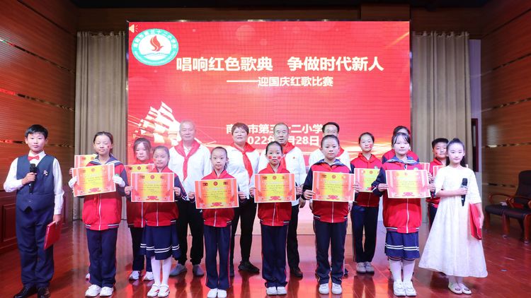 唱响红色歌典 争做时代新人一一南阳市第三十二小学迎国庆唱红歌比赛活动掠影飞扬的歌声,吟唱难忘岁月,凝聚心头不变的情结。熟悉的旋律,演绎时代激越,回荡情怀不改的真切。2022年9月28日上午,南阳市第三十二小学校在祖国母亲73华诞之际,举行了“唱响红色歌典,争做时代新人”迎国庆唱红比赛。 主持人介绍出席本次活动的嘉宾,少先队员向领导敬献红领巾。全体起立,齐唱中华人民共和国国歌。 姜校长为本次活动致辞,他表示,希望全体师生能以这次比赛为契机,唱出激情、唱出风采 用歌声表达对祖国的热爱和祝福 。 比赛正式拉开帷幕,本次比赛以班级为单位,各班学生积极踊跃全员参与比赛。比赛中同学们用激情奔放、慷慨激昂,声情并茂的诵读,嘹亮的歌声表达了对祖国的热爱之情。 各班代表队依次登台、引吭高歌,他们的歌声时而铿锵有力、时而婉转悠长、时而清脆嘹亮、时而余音缭绕,句句歌声表达了对党和人民的深厚感情。《红星闪闪》《我们是共产主义接班人》《学习雷锋好榜样》《团结就是力量》《人民军队忠于党》……一曲曲铿锵有力的革命歌曲,充分展示了学校学生忠于党、爱祖国的伟大品格和努力学习、勇于创新的精神风貌。 比赛过程中气氛热烈,高潮迭起,精彩纷呈,有的班级在演唱时加入了律动,有的班级对歌曲进行了分声部合唱。他们精神饱满,台风端正,演唱节奏准确,音色统一,艺术处理得当,演唱形式丰富,歌声余音绕梁,美不胜收。 在这次比赛中,各班唱出了正气、唱出了干劲、唱出了和谐,凝聚了人心,振奋了精神,锻炼了队伍,对校园文化建设起到了巨大的推动作用,为学校的发展注入了强大的精神动力。学校领导李校长、姜校长、曾主席、李主任为获奖班级颁奖并合影留念。 此次活动,不仅给学生提供了展示多方面才能的平台,也加强了各班学生之间的沟通交流,展示出了班级的凝聚力和团队协作精神,激发出了学生们的集体荣誉感,更陶冶了学生的情操,提升了学生的审美情趣,激发广大学生爱国、爱党、爱家乡的思想感情,着力引导学生时刻心系民族命运、心系国家发展,将爱国情感转化为刻苦学习、奋发图强的动力,在实践中锻炼,在实践中成长! 图片:朱瀚生 供稿:赵俊英 |