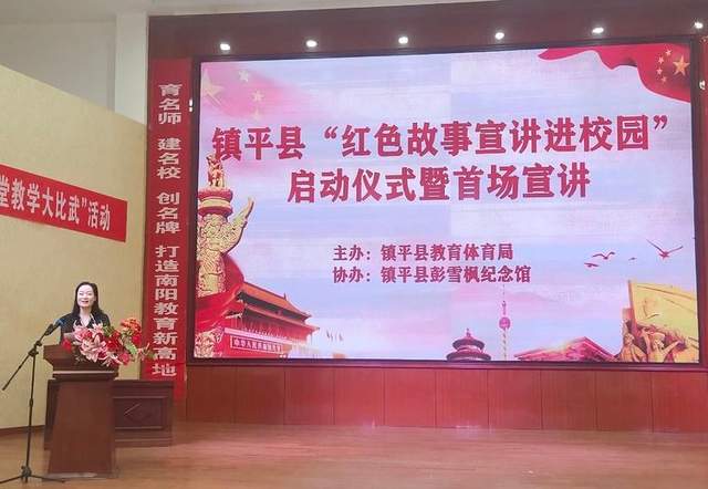 为喜迎二十大,共庆祖国73周年华诞,全面贯彻落实习近平总书记“要讲好党的故事、革命的故事、根据地的故事、英雄和烈士的故事,加强革命传统教育、爱国主义教育、青少年思想道德教育,把红色基因传承好,确保红色江山永不变色。”的重要论述,更好地传承红色基因、赓续红色血脉。 2022年9月30日,镇平县“红色故事宣讲”首场宣讲暨启动仪式在镇平县思源实验学校报告厅正式举行。