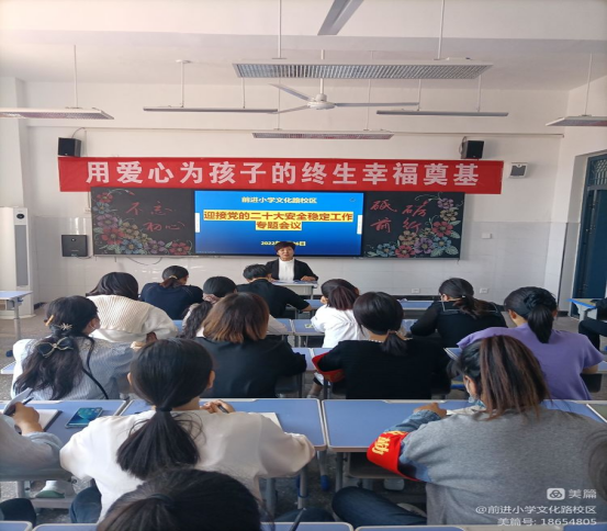 喜迎二十大 少年逐梦向未来——商丘市前进小学教育集团文化路校区迎国庆系列活动时间:2022-10-08 为迎接新中国即将到来的73岁生日,培养学生们的爱国主义情感,增强师生集体荣誉感和民族责任感,9月26-10月7日,商丘市前进小学教育集团文化路校区举行了以“喜迎二十大 少年逐梦向未来”为主题的迎国庆系列活动。 9月26日上午,在校长张学英的带领下,召开了“喜迎二十大 少年逐梦向未来”主题活动工作会议,大队辅导员刘风姿就活动具体内容进行了安排。 9月26日早晨,全校师生迎着新一天的朝阳,举行了以“喜迎党的二十大 少年逐梦向未来”为主题的升旗仪式。伴随着嘹亮的国歌声,鲜艳的五星红旗冉冉升起,迎风飘扬。在场的每一位少先队员向国旗行队礼,深怀对祖国无限的热爱和崇高的敬意。