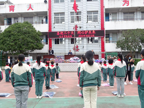 活动中 ,巴中市民政局四级调研员董亮同志嘱托孩子们要时时不忘父辈的艰辛与付出,不忘社会的嘱托与期许,不忘时代的感召与责任,做一个对国家、对社会有用之人。在《爱的奉献》的优美歌声中,孩子们接过一件件心爱的礼物,连连说着“谢谢叔叔”、“谢谢阿姨”,面对叔叔阿姨们一张张温暖的笑脸和一双双期待的眼神,孩子们深深地被感动,纷纷以最简单、最纯真的队礼向叔叔阿姨们表达最崇高的敬意。六年级张燕情不自禁地说:“我要用叔叔带给我的水彩笔面一幅党徽、再画一面红旗,向党的二十大献礼,祝福我们伟大的党、伟大的祖国繁荣昌盛。”学校党支部书记、校长刘继杨同志鼓舞全体师生要把这份爱心化作源源不断的动力,努力做好学校的每一项工作,让希望的种子在校园中生根、发芽,让充满爱心的花朵在校园中尽情绽放;不忘育人初心,践行育人使命,为党育人,为国育才,在党的领导下,携手社会各界以实干、实绩、实效喜迎二十大,同心护未来,办人民满意的教育。(李青春)
