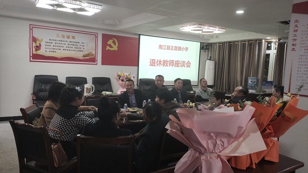 南江县正直小学:召开离退休教师座谈会为弘扬中华民族孝亲敬老传统美德,表达对离退休教师的关怀,11月3日,四川省巴中市南江县正直镇小学在工会的组织下召开了离退休教师座谈会,会议由学校工会主席何家驹主持,学校领导班子、校委会成员和八位退休教师参加了此次会议。