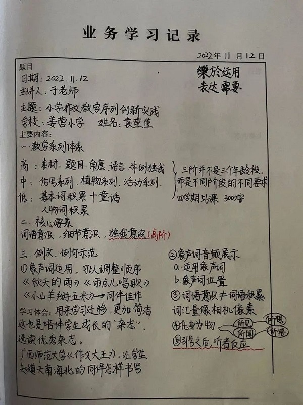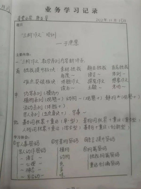 在阅读中反思,在反思中成长,在成长中进步。我校老师认真记录,将所学内容变成笔记鱼跃纸上。一段段文字积累的是知识,积累的是宝贵的财富。