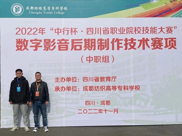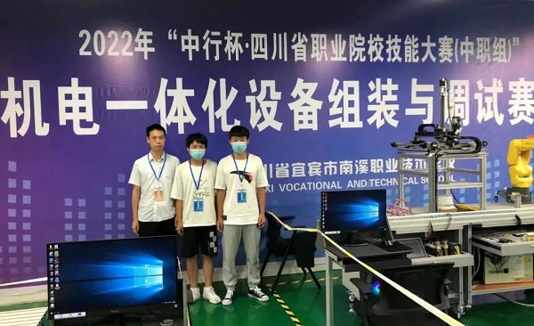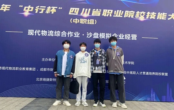 高2023届电子1班学生李冬冬(中)、周建兵(右)喜获2022年“中行杯”四川省职业院校技能大赛(中职组)机电一体化设备组装与调试赛项(学生组)三等奖(左为指导教师李飞龙) 会计专业学生组