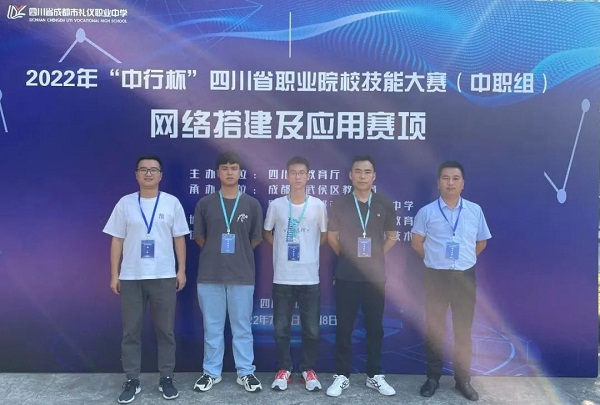高2023届计算机3班学生岳思成(左2)、2班学生卢照明(左3)喜获2022年“中行杯”四川省职业院校技能大赛(中职组)网络搭建及应用赛项(学生组)三等奖(右2为指导教师卢龙、右1为指导教师何会平) 多年来,小河职中始终坚守“为党育人、为国育才”教育初心,坚持以赛促学、以学促行。为此,学校专门成立了工作领导小组,落实校长、分管领导、科处室、专业部、教师和学生的职责,加强竞赛准备,突出过程与管理,与考核评价挂钩。“踏浪前行风正劲,不负韶华争朝夕”,小河职中的全体师生将以此次技能大赛为契机,在今后的教育教学中对标对表、查找差距,不忘初心、砥砺前行,再攀新高峰、再创新辉煌。(南江县小河职业中学: 岳兆明 伍朝政 蔡 玲) |
