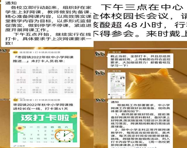 跟踪服务,线上教研。为了摸清各学校线上教学工作的开展情况,枣园镇中心校班子成员跟踪服务,积极深入各分包区域学校网课学校及班级群等,利用微信、钉钉等服务平台了解各学校线上教学时间安排、课程设置、线上教学方式等相关情况,为后续线上教学架桥铺路。