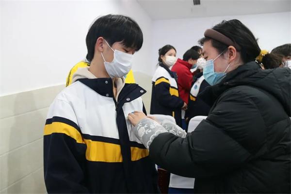 老团员为新团员佩戴团徽。当老团员将团徽佩戴在新团员的胸前时,他们感受到了时代赋予的使命,并把这份使命传达给了新团员们。 时代的责任赋予青年,时代的光荣属于青年,新老团员们应一起为了时代使命而共同努力奋斗!