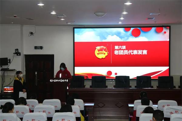 新团员代表颜杰和老团员代表孙林玉同学讲话。“立鸿鹄志,做奋斗者”,这是每一个青年团员的奋斗目标、奋斗方向。
