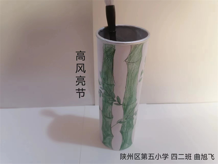 笔筒绘竹廉 廉洁沁心田 陕州区第五小学同学们以“梅兰竹菊”四君子和出淤泥而不染的“莲花”为素材,精心准备画笔、调色盘、水彩等绘画用品,选取自己喜欢的颜色,用墨汁的浓淡、颜料的色彩,生动的笔触在笔筒外勾勒出淤泥而不染的莲花、梅兰竹菊“四君子”、诙谐幽默的廉洁漫画……,把清正廉洁展现得恰到好处。一支花红,一抹草绿,皆为清廉之景;一声清吟,一回低语,均是清廉之音。一件件优秀的作品是第五小学清廉学校建设美好蓝图的一个缩影,也是今后在清廉学校建设方面拓宽拓深的良好铺垫。