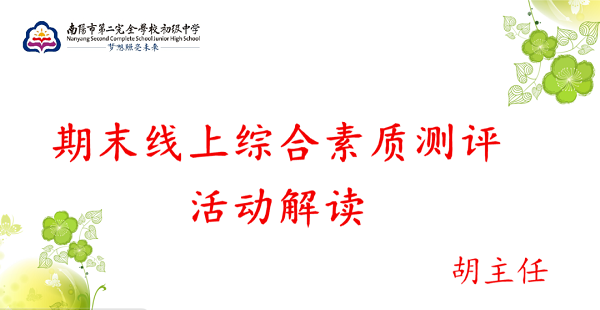 云端测评展风采,五育并举促成长(一)——2022年秋期线上综合素质测评活动开始啦网课背景下,如何对学生一学期的学习效果进行科学全面有效地评价?如何让评价结果成为促进学生成长进步的内驱力?南阳市第二完全学校初级中学进行了积极的实践和探索。 线上测评,精彩纷呈 近期,结合线上教学的实际情况,学校组织了2022年秋期期终线上综合素质测评活动。 本次测评活动涵盖道德与法治、语文、数学、体育与健康、音乐、美术、劳动教育等学科共7个项目,评价内容丰富多样,评价方式趣味多元,促进了学生德、智、体、美、劳的全面发展。 德育知识检测 德育知识测试,以思想教育、时事政治、文明礼仪知识为内容,以线上答题为检测形式,借助有趣的云端平台,让学生的心灵在活动中受到熏陶和感染。