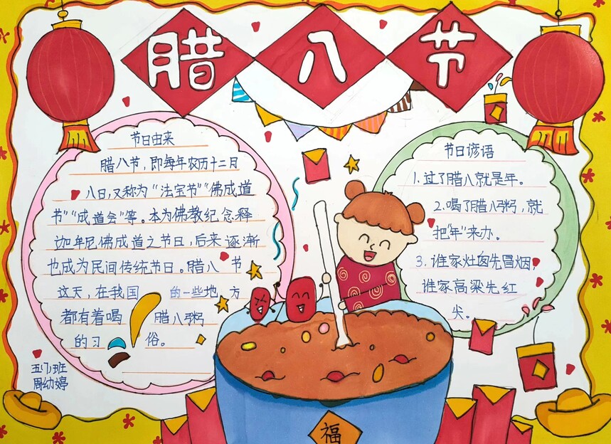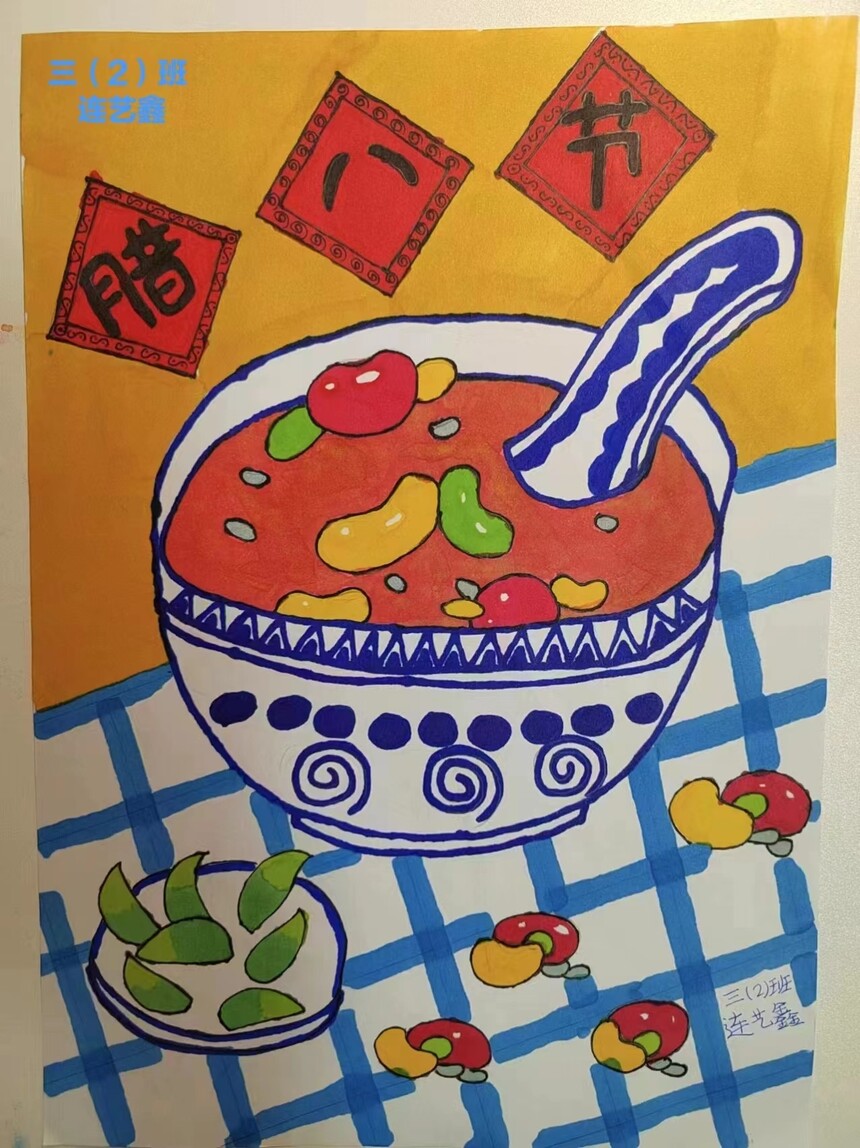 “俗话说‘腊七腊八,冻掉下巴’,早晨起来喝一碗腊八粥,甜甜的,暖暖的。……如果说过年是一曲交响乐,那么腊八节就是年前的序曲……”随着各班开展的线上主题队会说腊八,拉开了整场活动序幕。孩子们唱腊八歌、绘画腊八、制作腊八手抄报,一系列的活动,感受这浓浓的节日氛围。