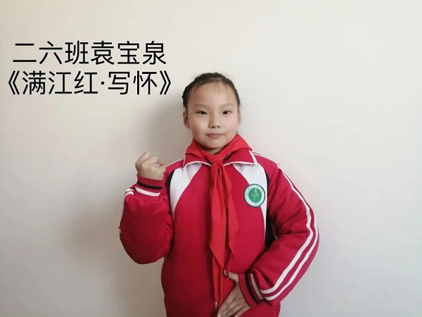 吟诵环节,传唱不朽的经典,继承优秀的传统。同学们从课文名篇入手,选取经典古诗文诵读,如《春江花月夜》、《七律长征》、《木兰词》、《沁园春.雪》等经典篇目,展示过程中,孩子们落落大方,读得抑扬顿挫,诵得通顺流利,演得入情入境。