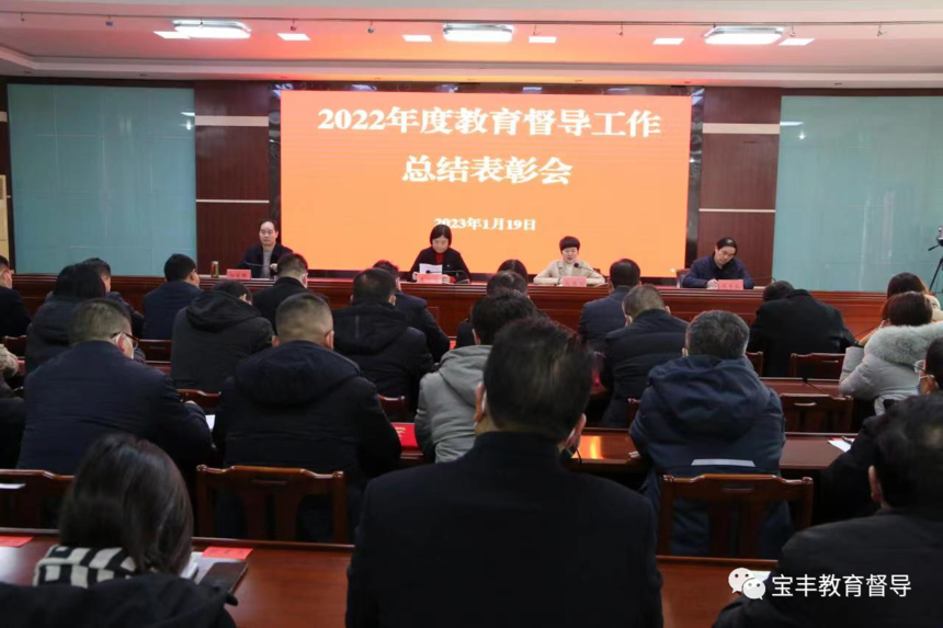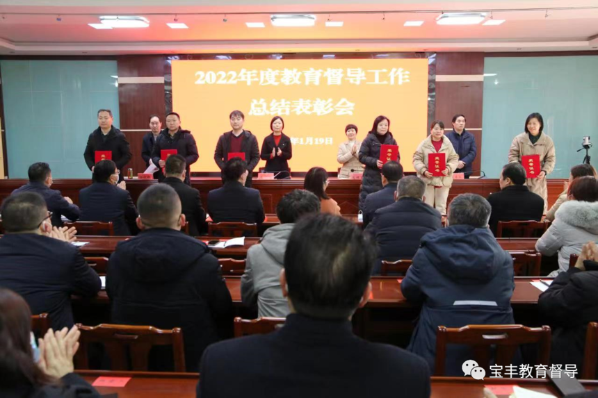 宝丰县2022年教育督导工作总结表彰会召开飞雪漫天迎新年,情暖教育谱新篇。1月19日上午,宝丰县教体局、县政府教育督导室联合召开2022年度教育督导工作总结表彰会,回顾总结2022年的全县教育督导工作,对10个先进单位和40位优秀督学进行表彰,安排部署2023年教育督导有关工作。