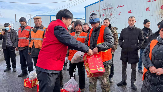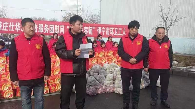 2月5日,当代雷锋庄仕华志愿者服务团团长杜怀银,伊犁伊犁河酒业董事长杜佳航,克拉玛依市分团团长陈健,伊犁广华工程建设有限责任公司一行多人带着慰问品来到伊宁市城市管理局环卫中心,向奋战在工作一线坚守岗位的环卫工人们送上元宵节节日的祝福。