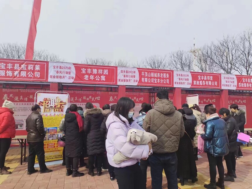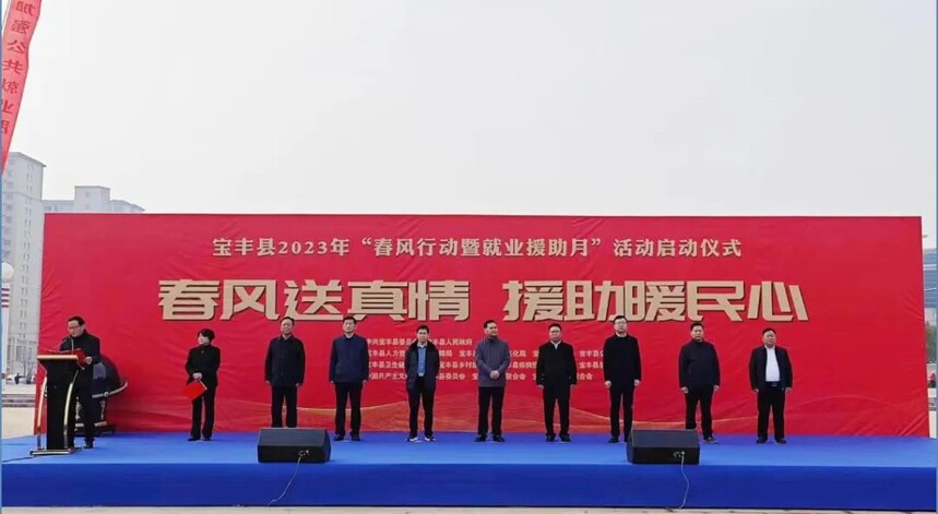 河南宝丰:2023年“春风行动暨就业援助月”专项活动启动2月16日上午,由宝丰县委、县政府主办,县人社局等11部门承办,以“春风送真情,援助暖民心”为主题的宝丰县2023年“春风行动暨就业援助月”专项活动启动仪式在宝丰县新世纪广场隆重举行。