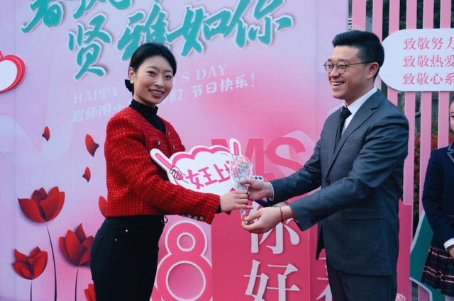 巾帼心向党,奋进新征程——眉师附小“三八”创意庆祝暖人心阳春三月,乍暖还寒,东坡区眉山师范学校附属小学的校园却浓情暖暖。为营造出学校健康和谐、积极向上的节日氛围,进一步提升女职工爱岗敬业、乐于奉献的工作热情,汇聚学校发展正能量,3月8日上午,东坡区眉师附小开展了“巾帼心向党,奋进新征程”三八国际妇女节庆祝活动。 朝露还未散尽,当清晨的第一缕阳光洒进校园时,学校礼仪队的孩子们早已盛装列队,静候着今天“女神”们的闪亮登场。一个标准的队礼,一句甜美的祝福,一次温暖的牵手,在队员们的引导下,女教师们手持拍照牌,穿过象征幸福的“女神门”,走过圣洁典雅的红地毯,接受学校男行政代表献上的鲜花和祝福,并拍照留念。手捧美丽的鲜花,带着美好的祝福,女教师们移步到抽奖区,带着激动,满怀期待,轻轻地转动幸运大转盘,领取小礼物……惊喜声、欢笑声、祝福声不绝于耳,大家兴奋地交谈着,分享着彼此的好运与喜悦。鲜花映红了女神们的笑脸,祝福与欢笑声在附小校园荡漾。 过去的一年,眉师附小女教工们发扬巾帼不让须眉之势,用高度的责任心和敬业情操,在自己平凡的工作岗位上挥洒着辛劳和汗水,谱写了眉师附小新的发展篇章。在这样一个特别的日子里,学校用满满的仪式感向全体女教工们致敬,致敬努力生活认真工作的人,致敬热爱美好传传递力量的人,致敬心系未来启承重任的人……春风十里,贤雅如你,特别的爱给特别的你! 本次“三八妇女节”庆祝活动的开展,进一步丰富了学校教职工的精神生活,加强了情感交流,增强了团队凝聚力和向心力,激发大家以更加饱满的热情投入到新学期的工作中去。(马胜军 通讯员 彭小强 王慧 ) |