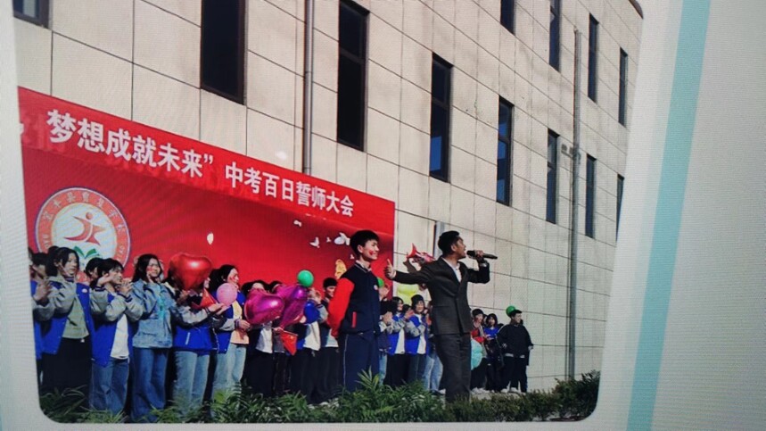 校长聂淑慧发出动员令:请老师和同学们相信自己,自我砥砺,扬帆起航,愿每一位学生都绽放光芒,实现自己的梦想! 全体学子誓言:珍惜一百天,奋斗一百天,拼搏一百天,让铿锵的誓言在中考中兑现,让青春的智慧在考场展现,让父母恩师的期盼实现。我们已开足马力,勇往直前,奋力一搏,成功在望!