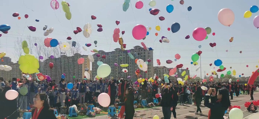 会场气氛进入高潮。“加油,加油,加油”,“坚持,坚持,坚持”,“必胜,必胜,必胜”的吼声响彻云霄,场景震撼人心。老师们,家长们都情不自禁的为孩子们的铮铮誓言而感动不已,掌声经久不息。3000余气球同时放飞,顿时,会场成了一片欢乐的海洋。