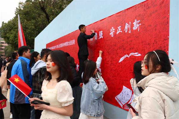 活动中,学生纷纷为自己的父母和老师送上了鲜花和祝福,表达心中那份无以言喻的感激和难以割舍的情感。他们用十八岁的青春年华庄严宣誓,努力冲刺高三最后阶段,勤奋学习、不负韶华、立志成才,感恩社会报效祖国。学生代表陈俊安同学在发言中表示,十八岁是扛起责任的年纪,将以破釜沉舟的勇气,与时间博弈,与自我较量,在六月的考场实现最美的绽放。