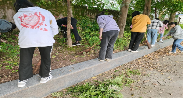 3月14日志愿者们清理绿化带中的杂物,悉心照料校园的植物,齐心协力,体验护植乐趣、掌握劳动技能、学习护绿本领,用实际行动践行 “绿水青山就是金山银山”的生态理念。 实践植绿