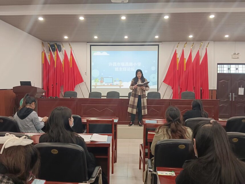 博采众长促成长——许昌市瑞昌路小学班主任论坛时间:2023-03-28 为进一步加强班主任队伍建设,充分发挥班主任在学校德育工作中的重要作用,及时总结和推广优秀班主任工作经验,切实提升班主任的专业素养和管理能力,助力青年教师成长,3月28日下午许昌市瑞昌路小学举办了班主任工作经验交流会。 本次分享会由德育处常莹杰老师主持,本次交流活动共有三项议程:1.请程特老师为大家做心理健康课观摩2.参加基本功大赛的老师分享心得。3.德育处岳主任做总结。