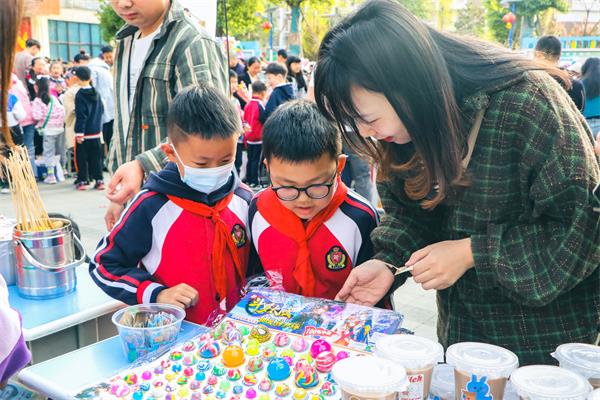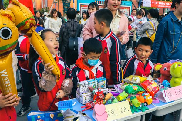 “我们这的钵钵鸡、冰粉绝对好吃!” “同学,看看我们的玩具吧!”...... “文具专卖店”、“美食店”、“精品店”、“套圈圈”......各班摆出自己精心准备的义卖品,商品琳琅满目。各种叫卖声、吆喝声、还有讨价还价声不绝于耳,也引得小“苏”童纷纷侧目驻足,精心布置的展台、精致的义卖品,精美的“广告牌”无不吸引着现场的每一个人。整个校园化身为爱心市场,一颗颗爱心慢慢蔓延,充盈每个人的内心。