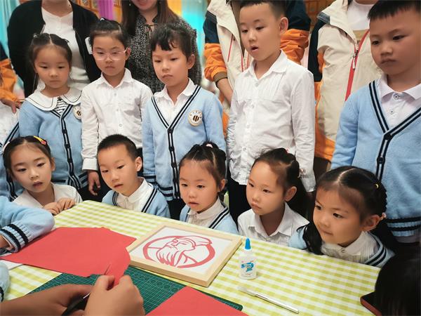 剪纸活动非遗传承人黄剑老师,从剪纸的发展历史、剪纸种类与形式等方面进行了介绍,并利用窗花、东坡画像等对剪纸的折、画、剪、刻、雕等技法进行示范与讲解。在活动现场,大家认真聆听、仔细观察、细心操作,一张彩纸,一把剪刀,在孩子和老师手中飞舞着,摇身变成了一件件艺术品。