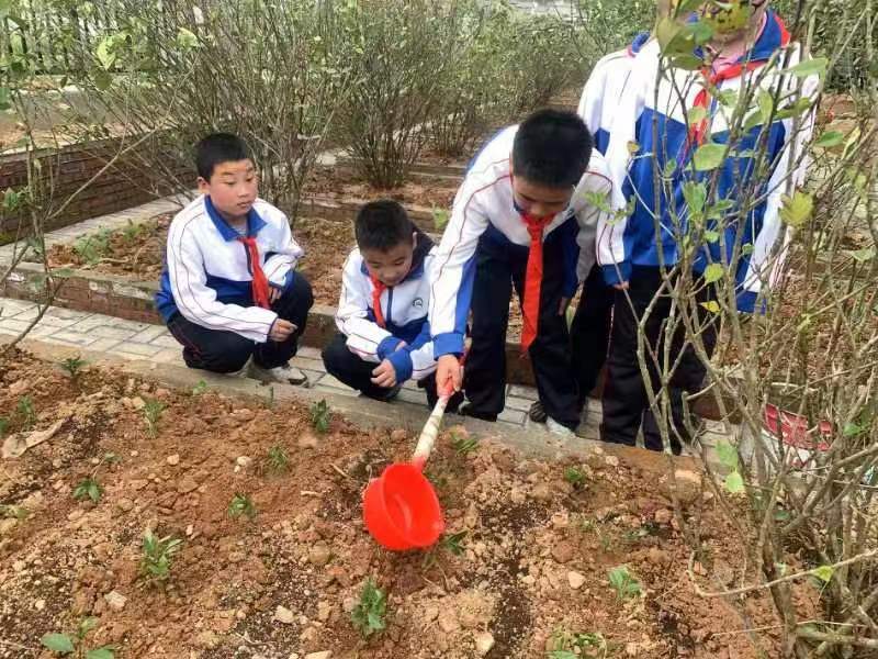 “铃铃铃……”下课铃一响,孩子们便奔向学校的中草药园。在老师的带领下,一双双小手动了起来:挥锹铲土、扶正树苗、填土压实、提水浇灌、认识药名、明白药效.....从教室到药草园,师生们纷纷化身中草药“小达人”,种植中草药70余颗。瞧,老师和孩子个个化身为辛勤“农夫”,分享劳动乐趣,播下希望种子,洒下汗水,期待收获。孩子们也在这满园青绿中绽放着纯真、满足的笑脸。