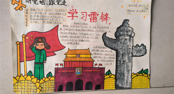 据悉,尚义小学各中队还举办了学雷锋手抄报、主题黑板报评比活动,各中队以丰富多彩、图文并茂的形式展示了学雷锋、讲文明、树新风等宣传内容,队员们在制作过程中重温了雷锋事迹,明确了雷锋精神的时代内涵,他们设计的手抄报主题突出、板式新颖、字迹工整,不知不觉中,雷锋精神像春风一样拂过了同学们稚嫩的心灵,播撒下了乐于奉献、助人为乐的种子。