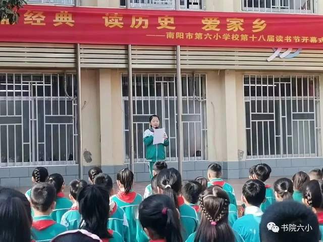 诵经典 读历史 爱家乡——南阳市六小第十八届校园读书节开幕2023年4月17日,南阳市第六小学校园里彩旗飞扬,鲜花绽放,书声朗朗,全体师生一起迎接第十八届校园读书节开幕。 本届读书节的主题为“诵经典,读历史,爱南阳”,也是我们在4月23日“世界读书日”献给孩子们最好的礼物。赵保健校长致辞回顾了南阳市第六小学书香校园建设历程,结合学校549年的办学历史,要求全体师生读历史,诵经典,把读书成长作为一项重要责任和使命,融入日常的学习生活,促进教师专业成长和学生全面发展,也更加热爱我们的家乡南阳。自 2005年以来,我们一直坚持开展读书活动,目前已举办了十八届“校园读书节”。学校科学规划研究,做好阅读课程设计、活动设计、评价设计和读书规划,致力于让师生过一种健康的、充满书香的生活。教师用自己的渊博知识和人格魅力去影响教育学生,学生以谦谦君子的气质去迎接未来的逐梦历程。教师代表余淼、学生代表王春涵上台作了读书倡议和读书分享。 当天,各年级统一主题,以班级为单位在教室里进行了不同形式的读书活动,迎接第十八届读书节的到来。本届校园读书节将历时一个半月,六一儿童节闭幕。期间将开展丰富多彩的阅读活动、征文活动、诵读经典和节目编排,评选出书香班级、书香家庭书香教师和读书小博士, 激励师生爱上读书,养成读书好习惯,为终身发展奠基。 南阳市第六小学五百多年来文脉不断,近20年来以建设书香校园为抓手,突出阅读、武术、书法的教学特色,弘扬优秀传统文化,使文化自信扎根于孩子们的心灵,并使其终身受益。学校除坚持举办校园读书节之外,还组织专家和老师共同编撰了校本教材《经典诵读》六册,精选唐诗宋词元曲和部分古文名篇, 让学生吟咏诵读。并在此基础上,向不同年级学生推送现代文的阅读方法、要求和篇目,鼓励学生在最美的年华多读书、读好书。 经过多年的读书推广,成效显著,学校先后被评为“全国读书育人特色学校”、“河南省经典诵读示范学校”、“河南省书香校园”、“河南省语言文字示范学校”等称号。2023年四月,六小书香校园建设方案《构建书香校园,让阅读融入生活》在《河南教育》第四期“校长圆桌会议”推广。建设书香校园,任重而道远,我们愿与老师们一道,把读书的烙印刻在孩子心中,把经典文化、传统文化和红色基因融进孩子们的血脉,让新一代接班人更全面,更优秀、更有内涵!(邢有军 邢凯 别宜鲛) |
