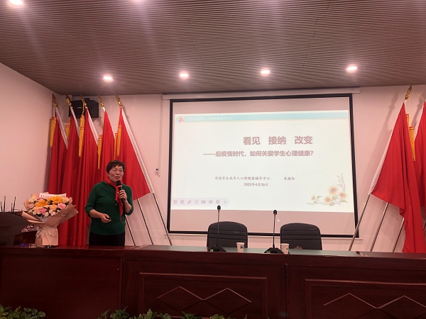 从“心”出发 守护成长——许昌市瑞昌路小学心理健康讲座时间:2023-04-27 为深入开展心理健康教育工作,引导老师高度重视学生身心健康和生命安全,许昌市瑞昌路小学于4月26日下午组织了全体教师心理健康培训讲座,由河南省心理健康教育骨干教师、省学术技术带头人、省教师教育专家、许昌市青少年心理健康辅导中心孔丽红主任主讲。