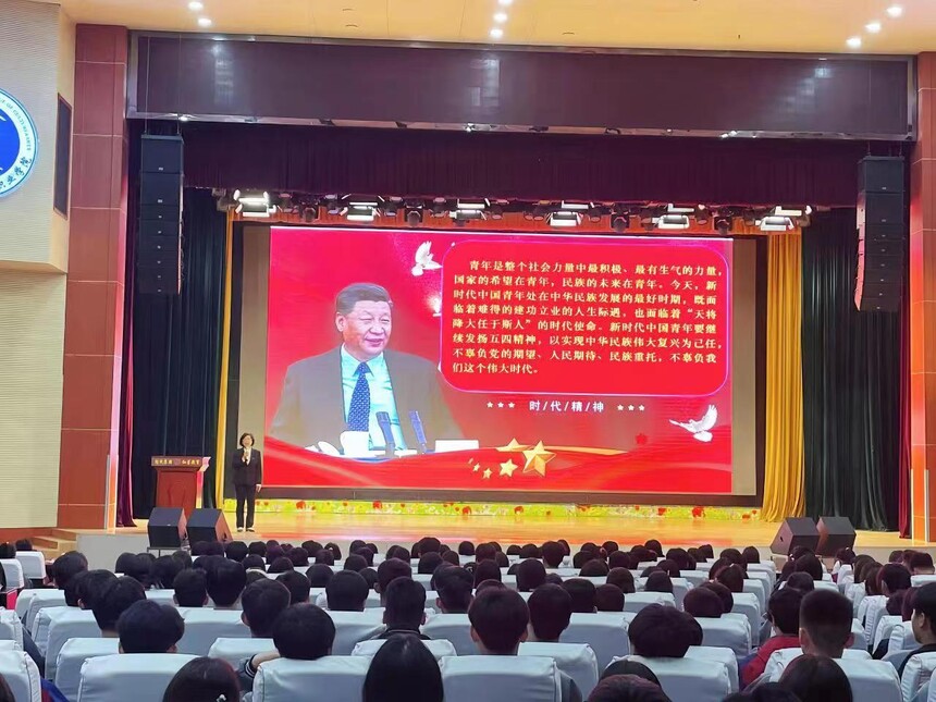 河南宝丰:弘扬“五四”精神,争当时代新人 红星高中举办“五四”专题思政课“作为新时代的青年学生,我们是祖国未来建设的生力军。要坚定理想信念,勇担时代重任,发奋学习,积极进取,为实现中华民族伟大复兴的中国梦贡献力量!”5月4日上午,宝丰县红星学校的多功能大厅里座无虚席,学校党支部委员王玉枝正在激情洋溢地给高中部师生主讲“五四”专题思政课。