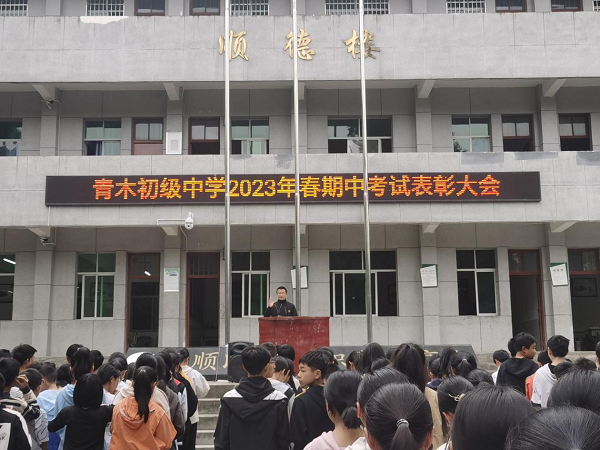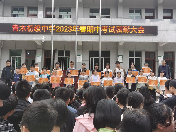 不负韶华 奋斗当下 ——恩阳区青木中学2023年春季期中考试表彰大会根据教学计划,2023年4月中旬完成了学校三个年级段的期中考试。2023年4月27日下午14:00四川省巴中市恩阳区青木初级中学组织召开了2023春期中考试表彰大会。表彰大会由学校分管教学的副校长杨国华老师主持,青木中学党支部书记、校长刘君和学校党支部副书记、工会主席谢非尽为同学们颁发奖状,全体教职工参与表彰大会。 首先,青木中学副校杨国华对半期考试做总结,他对同学们近期的表现进行肯定。同时也指出了同学们存在的问题并提出希望,期待同学们取得更大的进步。