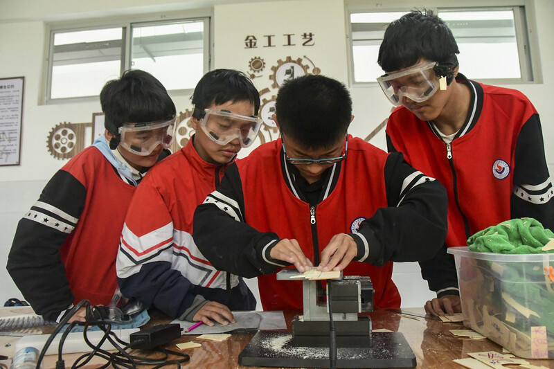 在金工木艺坊,大家通过参观展厅进一步感受了工业文化,在研学导师的带领下动手操作制作工业产品,近距离感受工匠精神,坚定“技能成才,强国有我”的信心和决心。